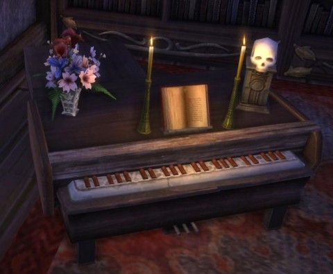 Winged piano, set excludes the flowers and the skull on stand. Can be viewed in the dim "The Raven - Edgar Allen Poe" on Zaviel, as well as in the castle on the left on the top floor in "Little Ravenshire" on Zaviel.